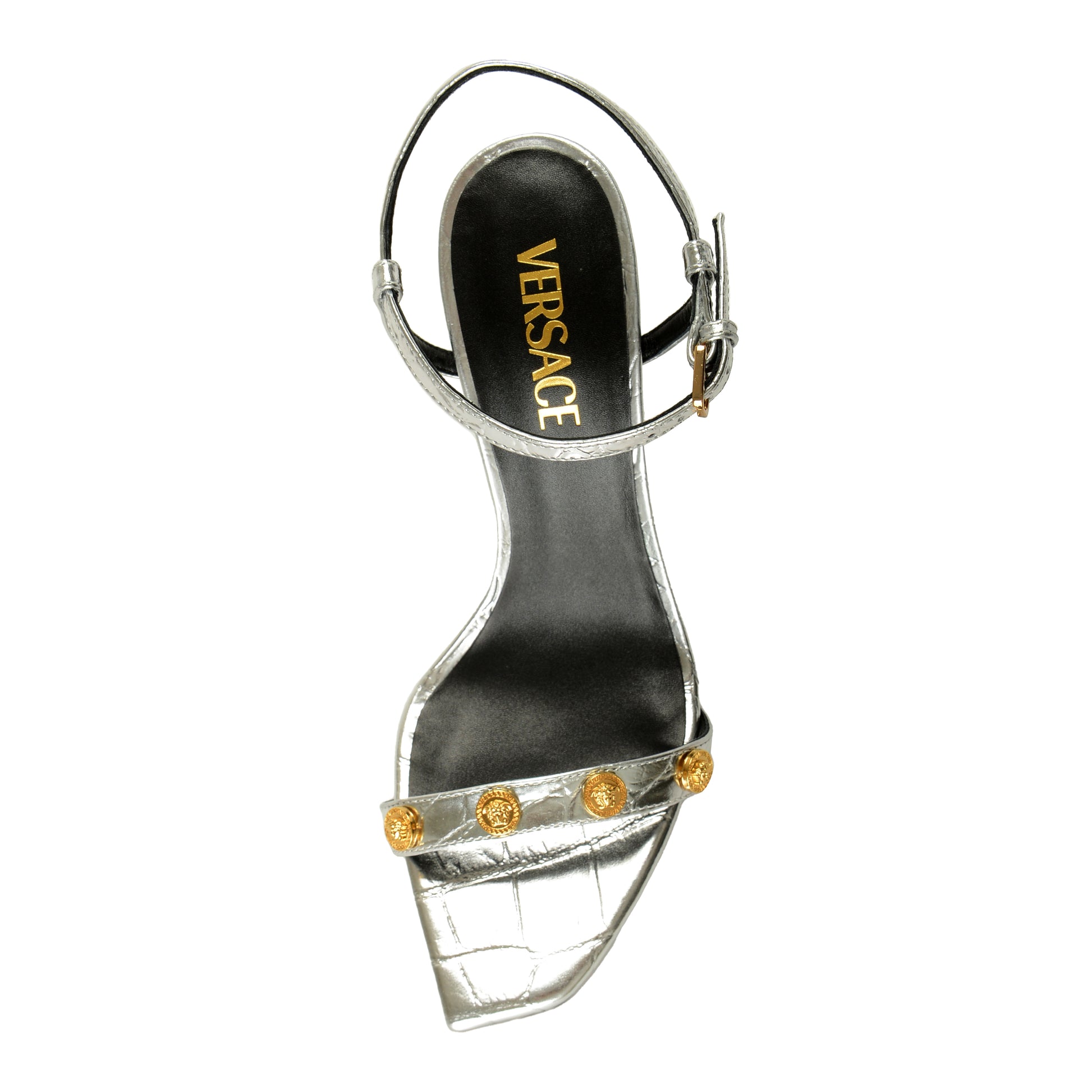 This is authentic Versace Women's Croc Print Leather Heeled Slingback Pumps Shoes
